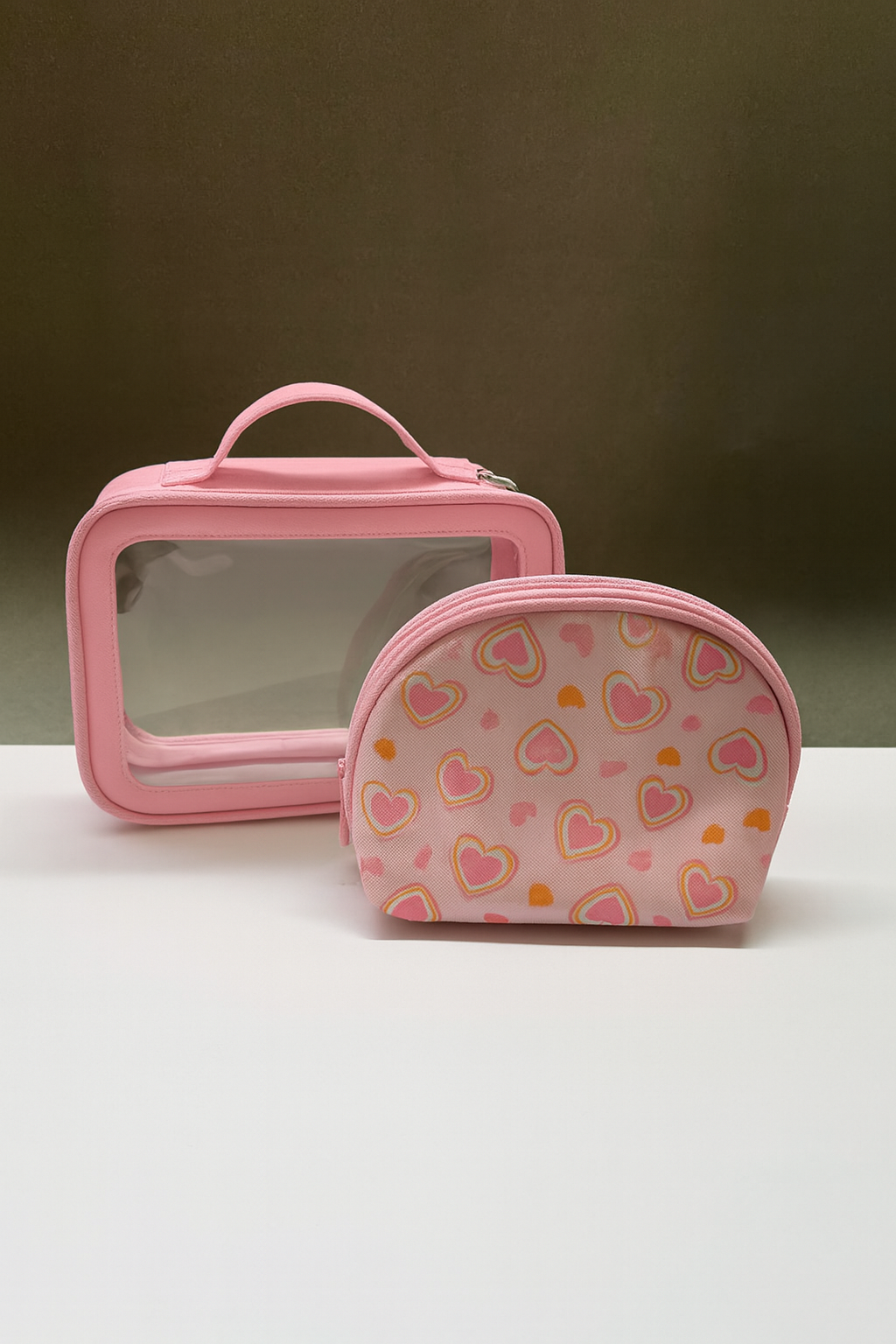 Set Cosmetiquera Transparente + Mini Cosmetiquera de Corazones