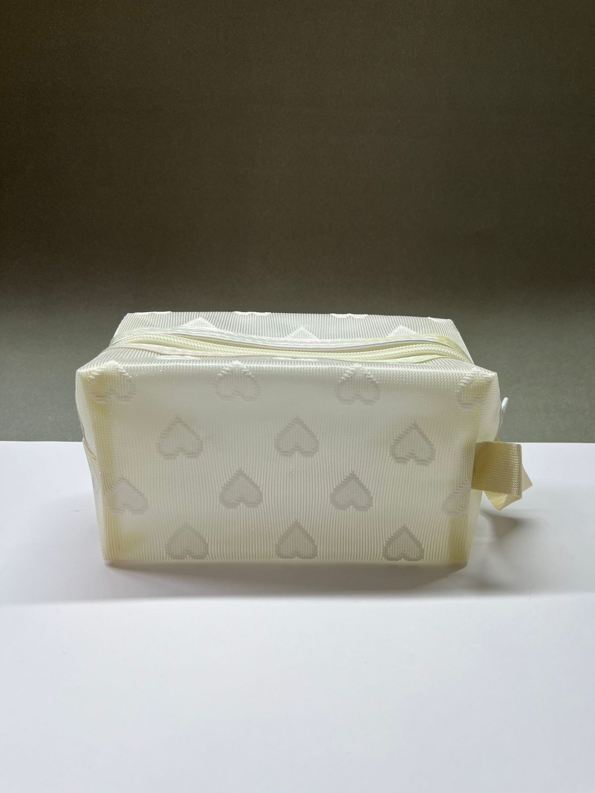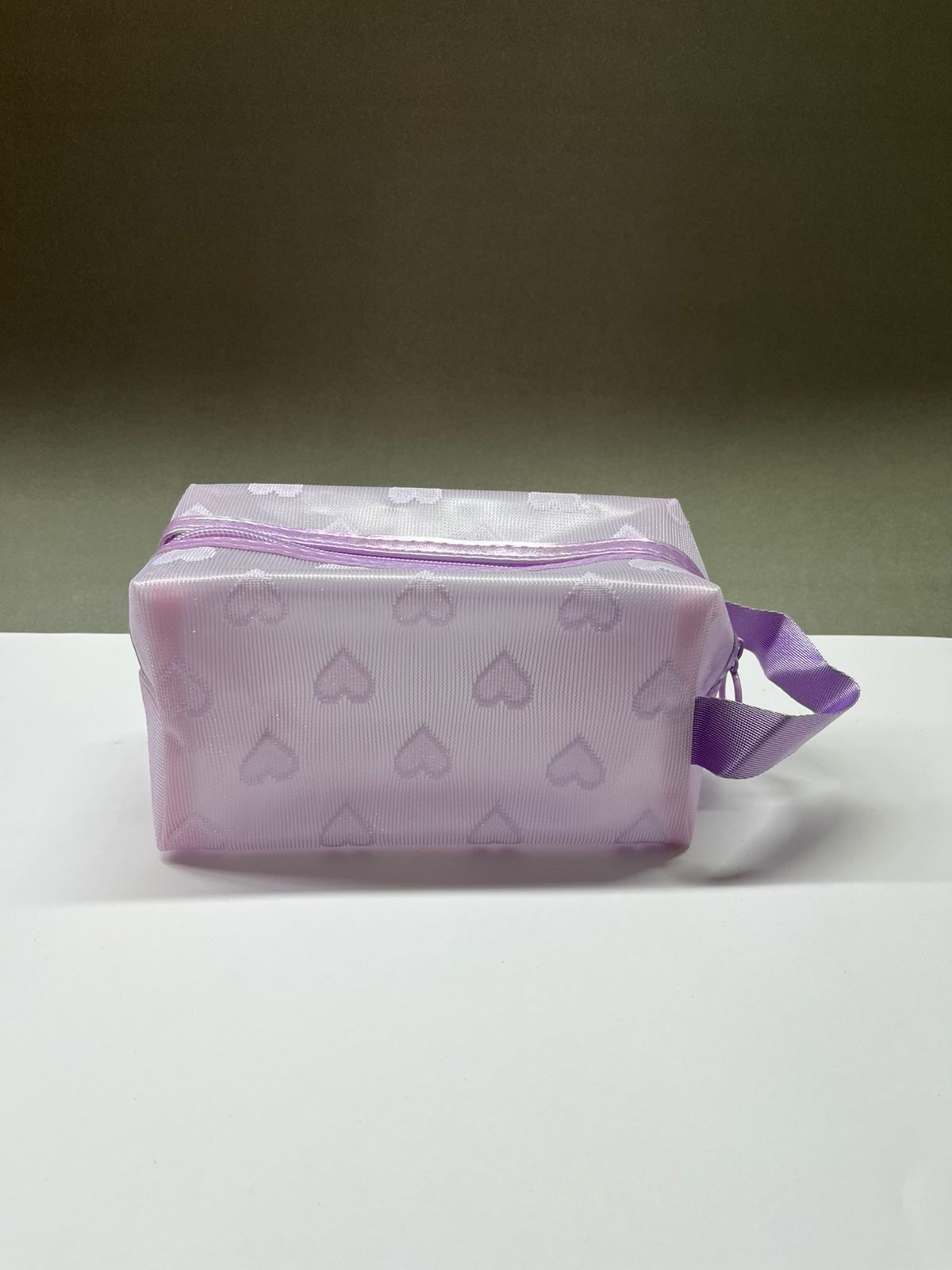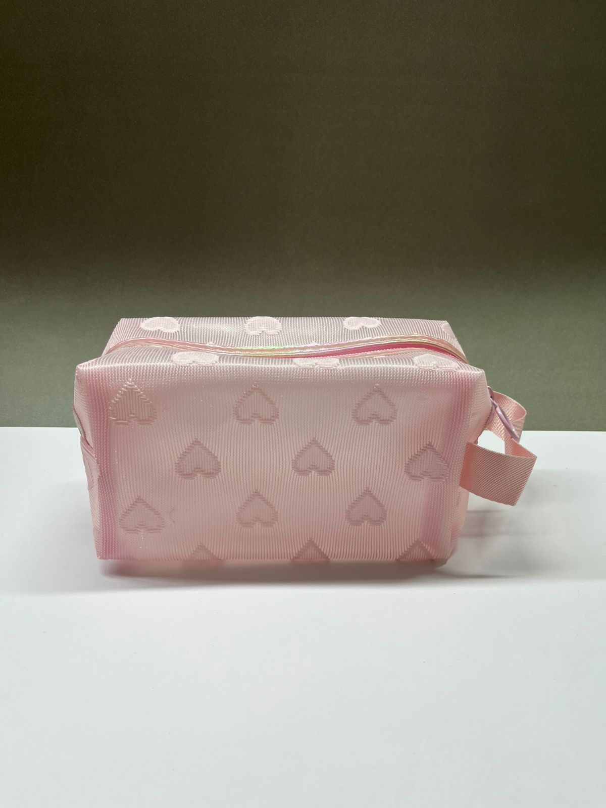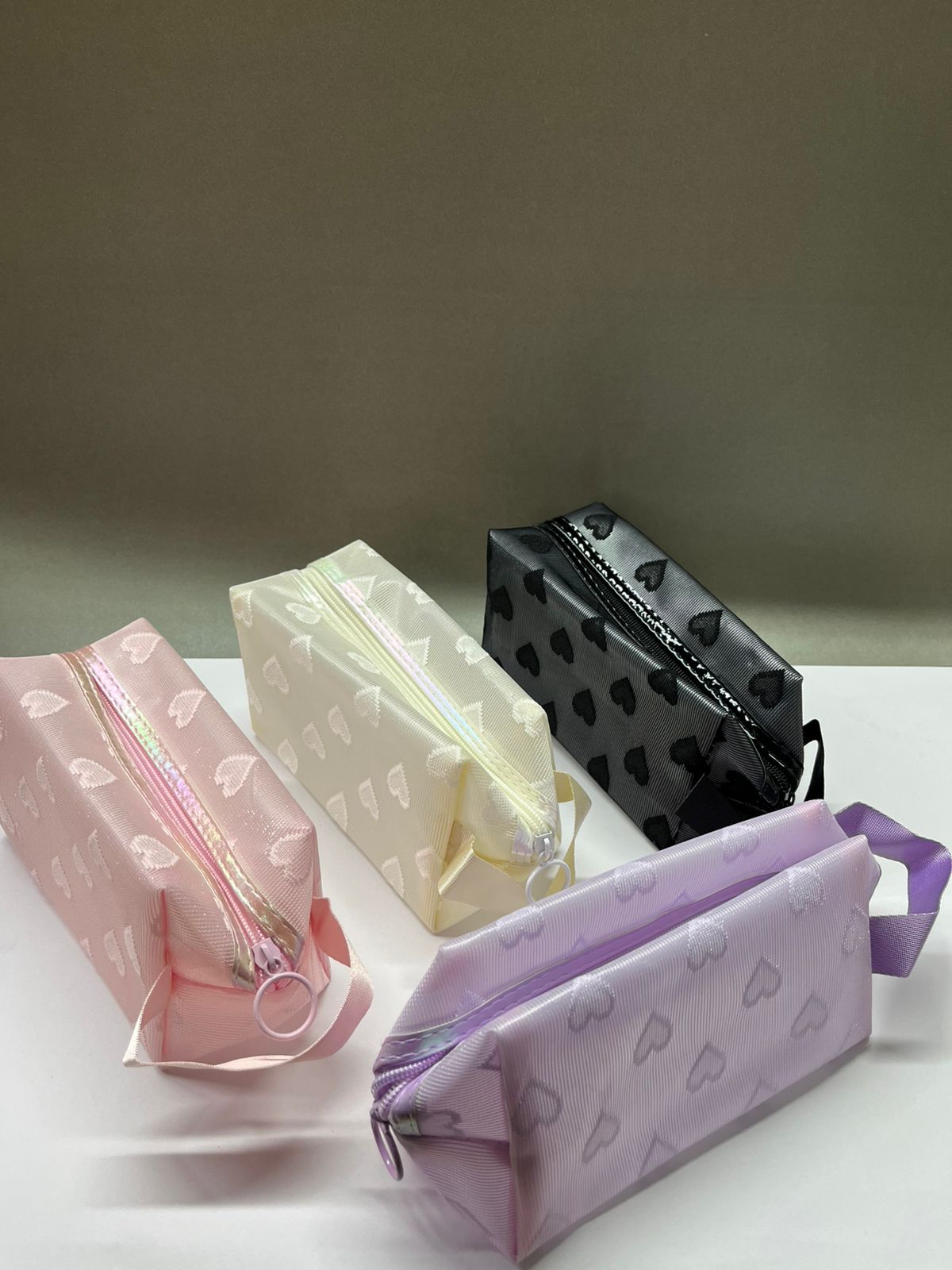 Organiza tu maquillaje, papelería o esenciales del día a día con estos neceseres rectangulares de diseño adorable. Están elaborados en material resistente con acabado translúcido y estampado de corazones, ideales para llevar en el bolso, maleta o para uso escolar.