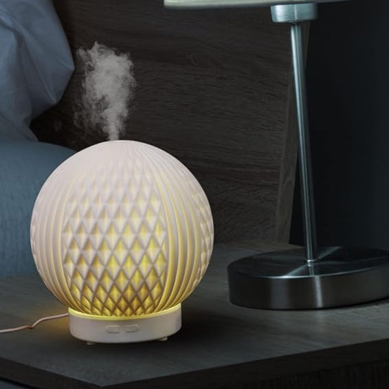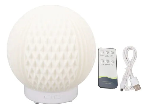 Elegante difusor ultrasónico de aceites esenciales con diseño esférico moderno. Funciona como humidificador y luz nocturna, ideal para el hogar, dormitorio, oficina, spa o yoga. Capacidad de 200 ml con hasta 9 horas de funcionamiento, apagado automático y control remoto. Fabricado en materiales seguros sin BPA, ofrece un ambiente relajante con vapor frío y suave iluminación cálida. Un regalo perfecto para amantes de la aromaterapia.
