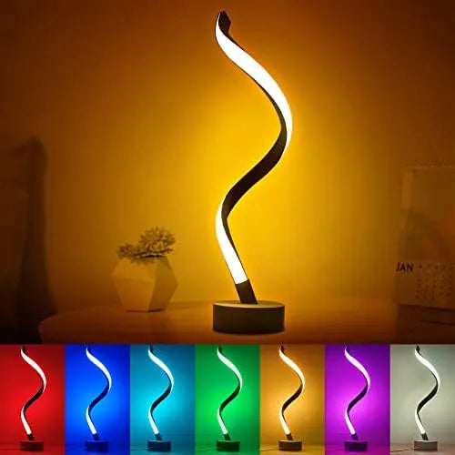 Lámpara de mesa LED en espiral en forma de S, luz de lectura pequeña para mesita de noche (negra)