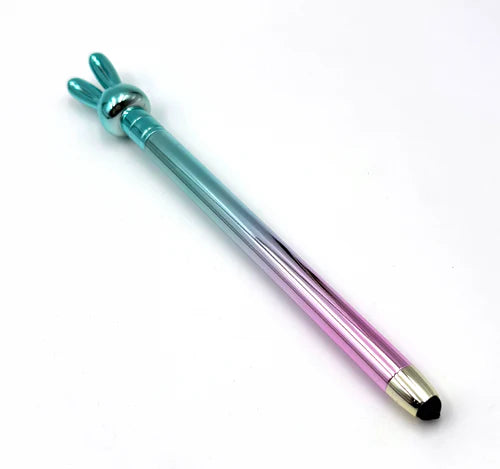 Hermoso lapicero en forma de conejo con colores metalizados, y punta para las pantallas, color de la tinta: Azul