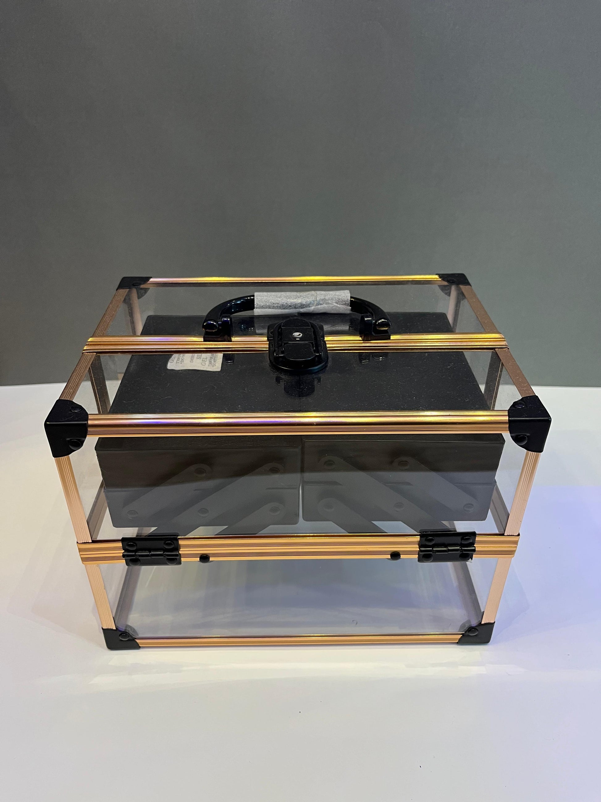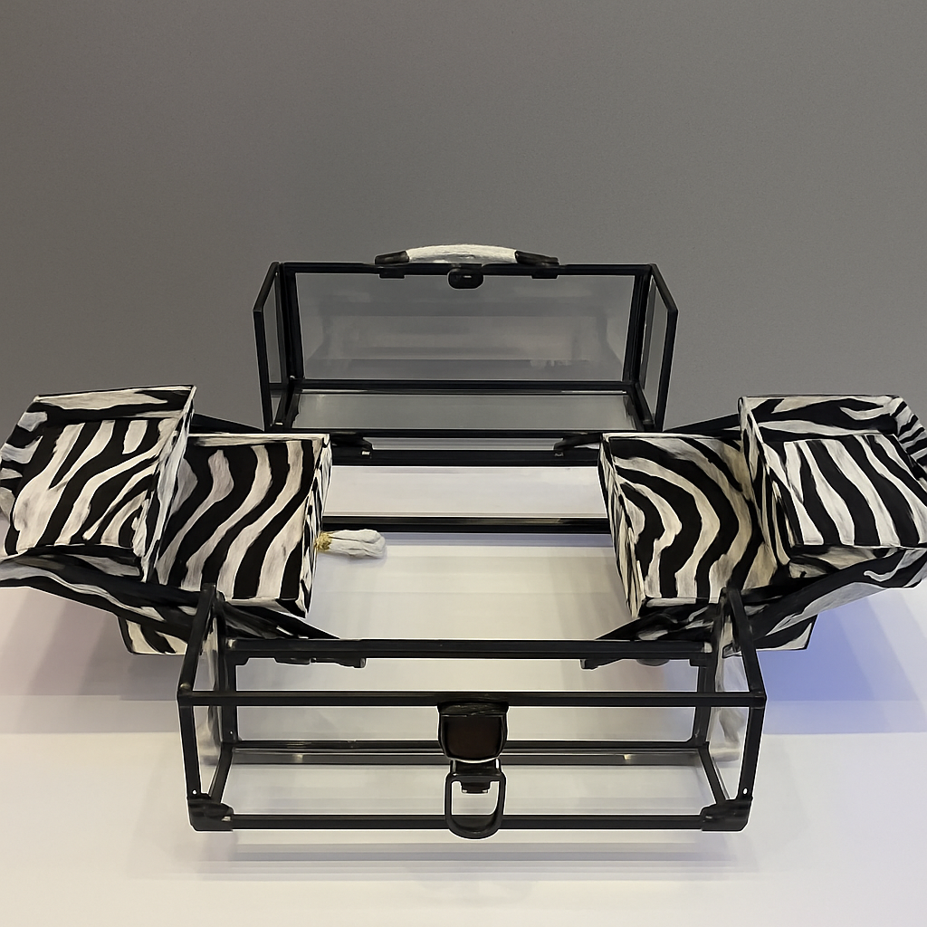 Organiza tu maquillaje y accesorios con estilo gracias a este elegante neceser organizador transparente con marco metálico en tono rose gold o cebra. Su diseño moderno combina estructura resistente y ligereza, ideal tanto para uso profesional como personal.