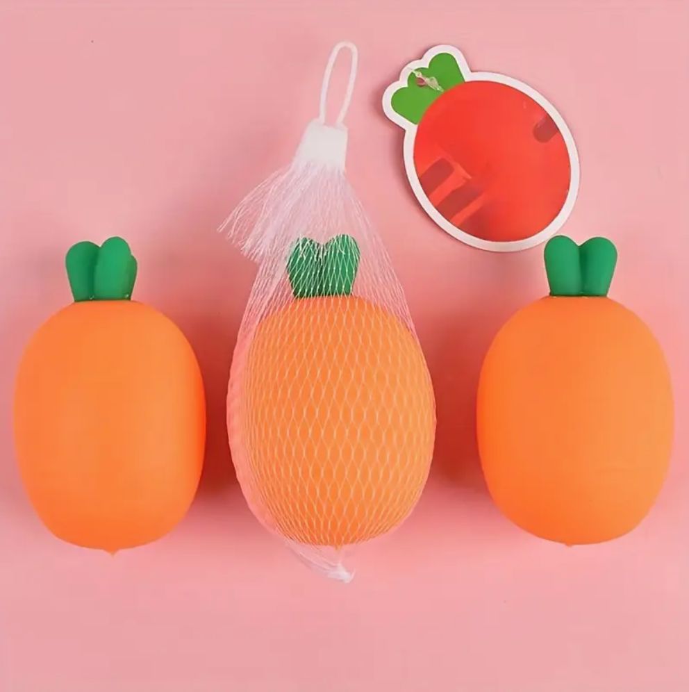 Juguete suave y esponjoso en forma de zanahoria que puedes apretar para liberar estrés y ansiedad. Recupera su forma lentamente, ofreciendo una sensación relajante y divertida.