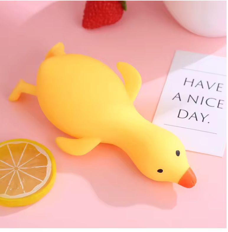 Juguete suave y esponjoso en forma de ganso que puedes apretar para liberar estrés y ansiedad. Recupera su forma lentamente, ofreciendo una sensación relajante y divertida.